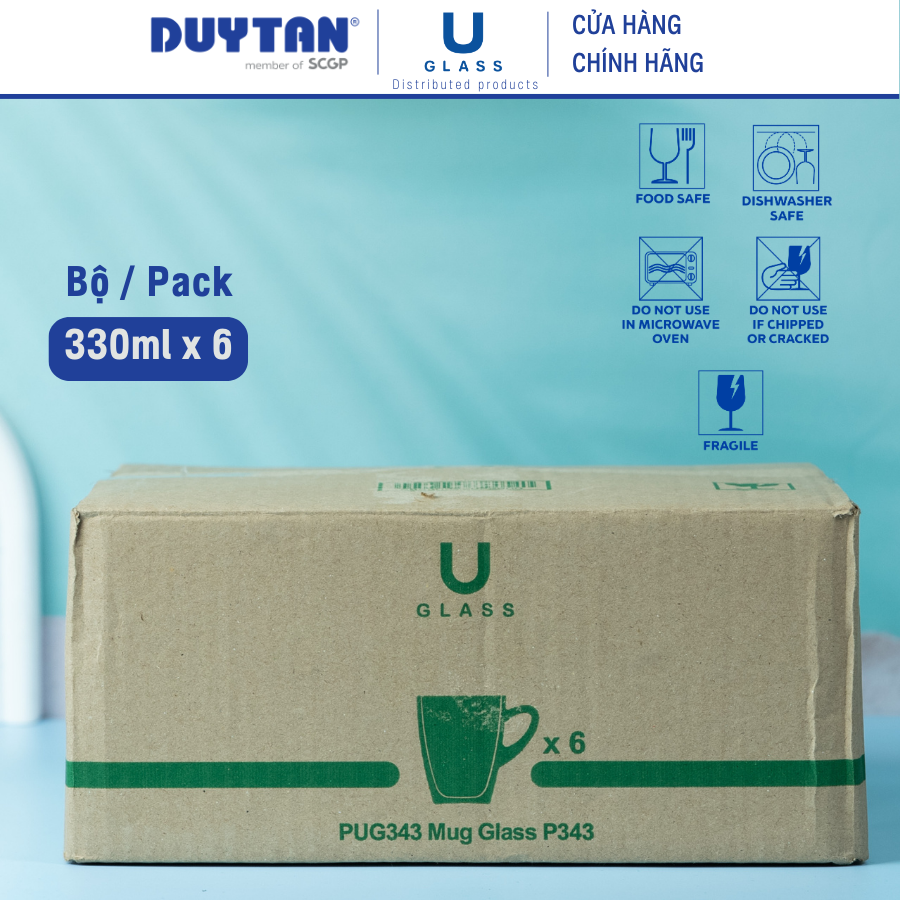 Tên sản phẩm: Bộ 6 Ly cốc thủy tinh U Glass 330ml kiểu quai - PUG343, thủy tinh cao cấp
