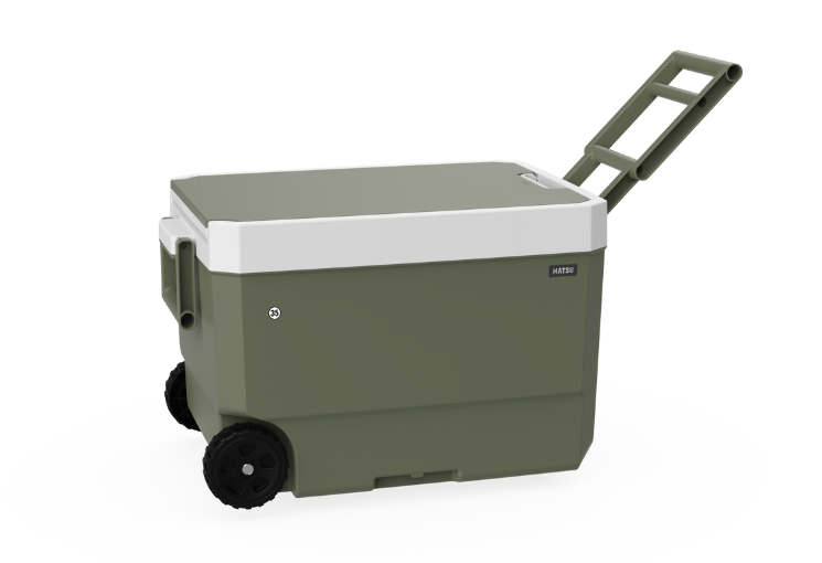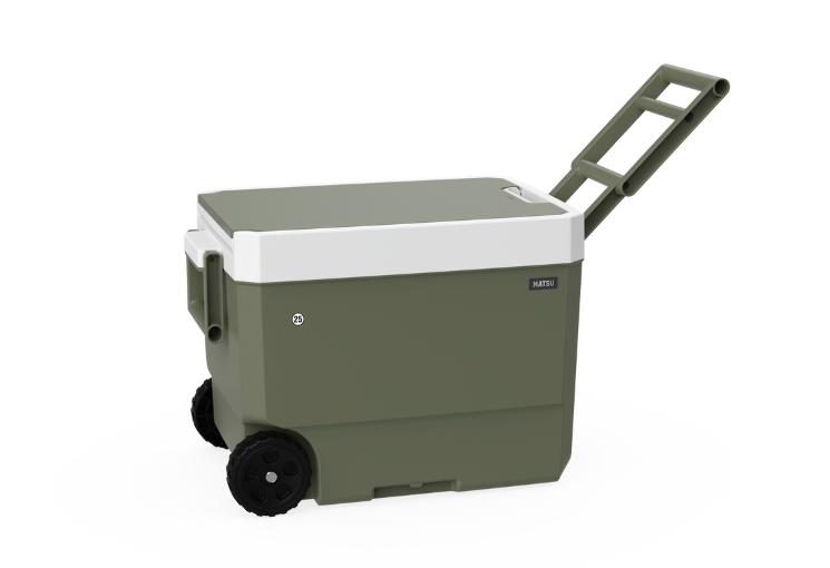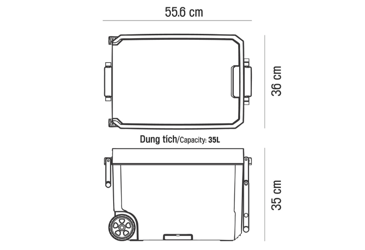 Thiết kế bánh xe và tay kéo tiện lợi giúp bạn di chuyển thùng đá một cách nhẹ nhàng và linh hoạt trên mọi địa hình.