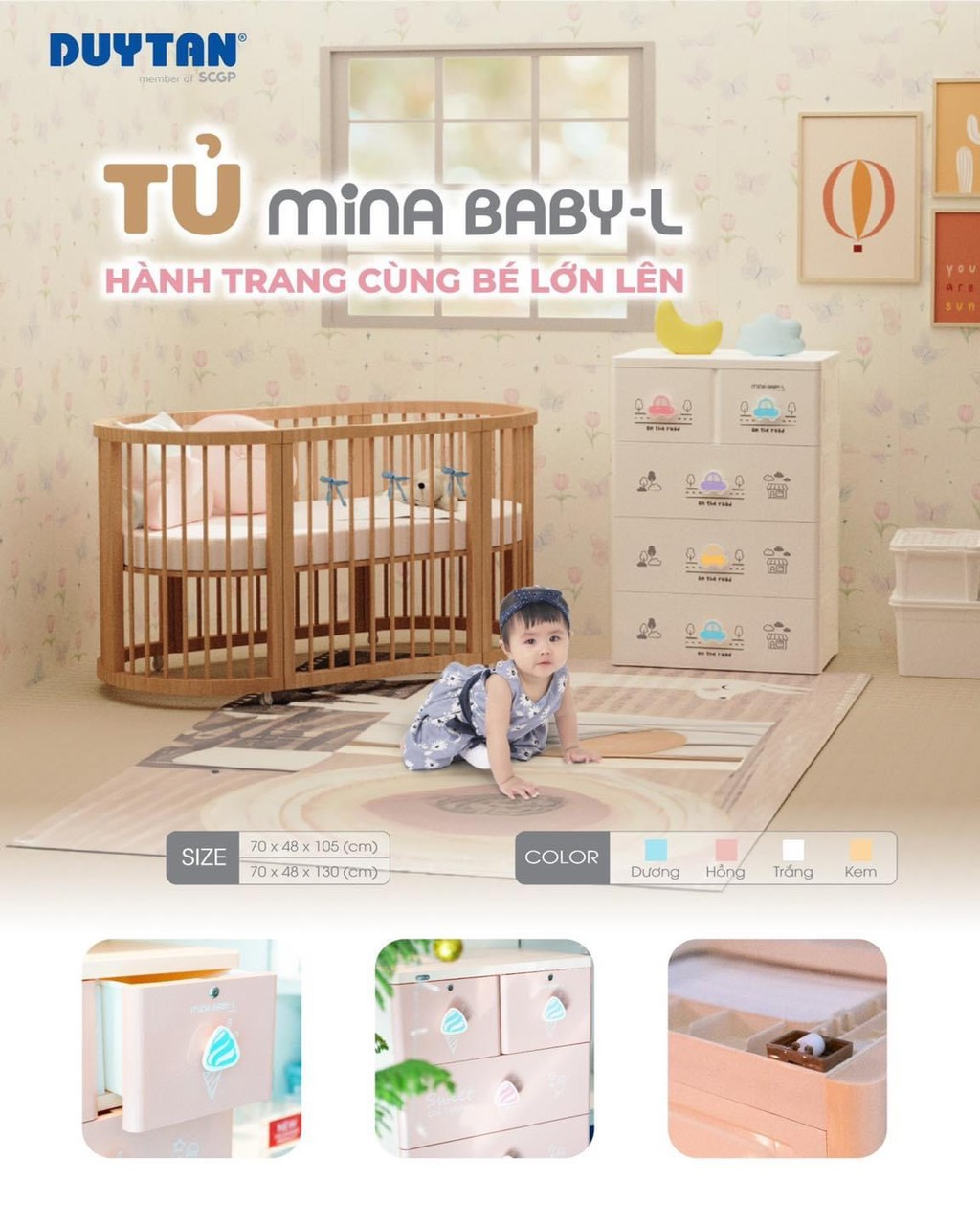 MINA BABY L – HÀNH TRANG CÙNG BÉ LỚN LÊN 💞 Duy Tân từng nhận được rất nhiều lời “tâm tình” của khách hàng rằng: “Rất quý chiếc tủ nhựa Duy Tân được mẹ mua cho lần đầu đi học xa nhà” hay “Tủ Duy Tân rất bền, đây là chiếc tủ mình được bà nội tặng khi mình vừa chào đời, đến giờ dù có bay màu một chút nhưng vẫn dùng rất tốt”,… Bấy nhiêu đó có thể thấy rằng, tủ nhựa Duy Tân đã từng là tuổi thơ, kỷ niệm của rất nhiều người. Và chính vì thế, Duy Tân vẫn từng ngày cải thiện những mẫu mã, chất lượng tủ để được đồng hành cùng khách hàng, nhất là các bé nhỏ trong hành trình lớn lên. Tủ Mina Baby L - một chiếc tủ xinh xắn và chứa đựng nhiều vật dụng sẽ tập cho bé tính tự lập, gọn gàng và sẽ mang đến cho bé thật nhiều kỷ niệm trong những năm tháng đầu đời. ☘️ Được làm từ chất liệu nhựa PP chính phẩm, bền màu, an toàn với trẻ nhỏ. ☘️ Kích thước đa dạng, 4 ngăn & 5 ngăn, bạn có thể lựa chọn theo nhu cầu sử dụng. ☘️ Màu sắc pastel, với 4 màu đa dạng, phù hợp với cả bé trai hoặc bé gái. ☘️ Họa tiết cùng với tay nắm ở từng hộc tủ được thiết kế với hình dạng sticker độc đáo, xinh xắn, tạo nên tổng thể hài hòa và đáng yêu, làm nổi bật căn phòng của bé. ☘️ Tủ có bánh xe dễ di chuyển. ☘️ Hộc tủ lớn, chứa đựng được nhiều đồ đạc. 🤗 Trải nghiệm ngay cùng Duy Tân nhé!