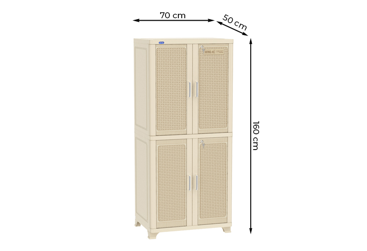 Wing là dòng sản phẩm tủ nhựa Cao cấp duy nhất có thể treo đồ của nhựa duy tân có kích thước lớn nhất của Duy Tân, mặt tủ có ốp Meca và có khóa ở cánh tủ trên.